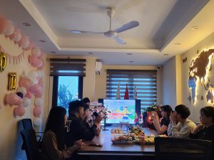 Cuối buổi, cả thầy cô, cán bộ và học viên còn quây quần bên nhau trong tiệc ngọt và cùng hát karaoke, tạo nên những khoảnh khắc gần gũi và chân thật. Chính những hoạt động giản dị nhưng đầy niềm vui này đã giúp học viên cảm nhận rõ ràng rằng thầy cô và cán bộ Vinjako không chỉ là những người hướng dẫn trong công việc, mà còn giống như anh chị, như những người bạn thực sự đồng hành cùng các bạn trên hành trình du học.